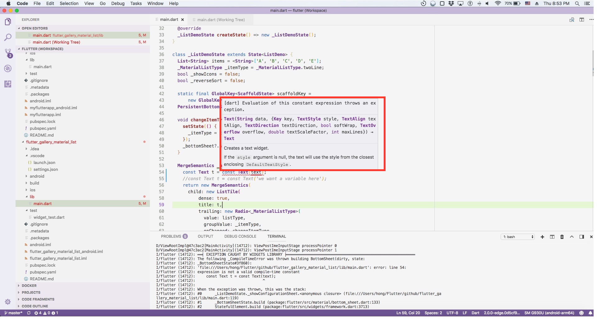 Within a constant context, you can omit the const before a constructor or literal. Future results in async function bodies must be awaited or marked unawaited using dart:async. How do you detect the host platform from dart code? How do i supply an initial value to a text field? 30.06.2020 · case expressions must be constant in dart.