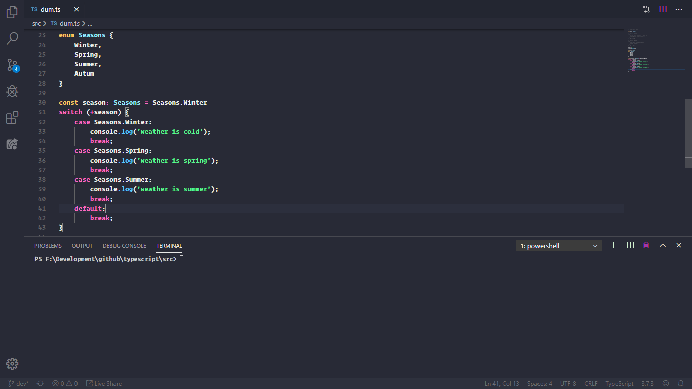 Enumerated types work well in switch statements. 30.06.2020 · case expressions must be constant in dart. Within a constant context, you can omit the const before a constructor or literal. Statements end with a semicolon. Enumerated types work well in switch statements. 注意,dart format 能自动处理 99% 的情况,但是剩下的 1% 需要你自己处理。 dart format 不会把很长的字符串字面量分割为 80 个字符的列,所以这种情况你需要自己手工确保每行不超过 80 个字符。 note that dart format does 99% of this for you, but.. Future results in async function bodies must be awaited or marked unawaited using dart:async.