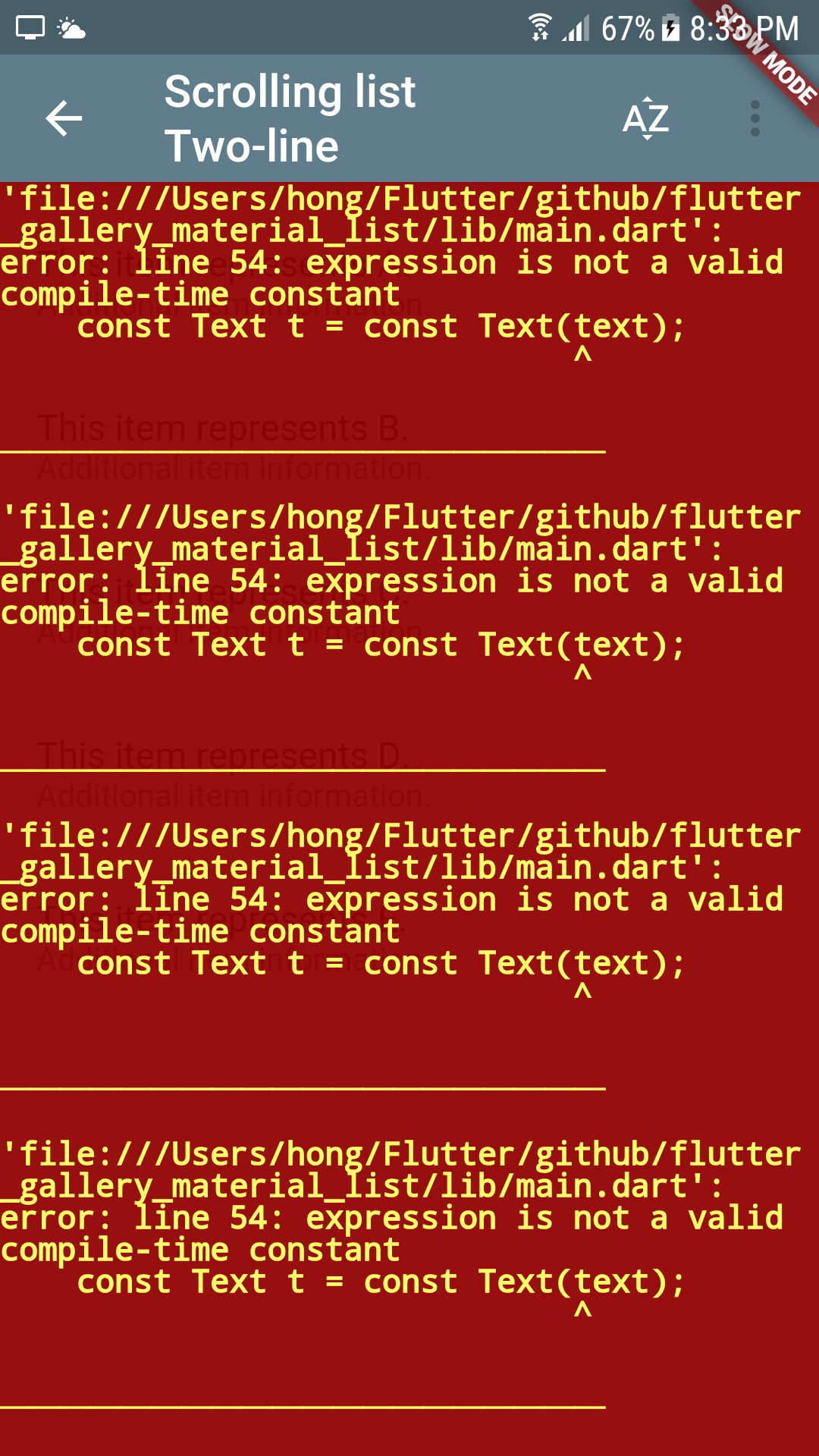 Prefer using lowercamelcase for constant names... How do i supply an initial value to a text field? Converting string to map in dart. Within a constant context, you can omit the const before a constructor or literal. , in which case they must be set exactly once. Enumerated types work well in switch statements. In this case, it's idiomatic to name the unused parameter _. How do you build a singleton in dart?. Prefer using lowercamelcase for constant names.