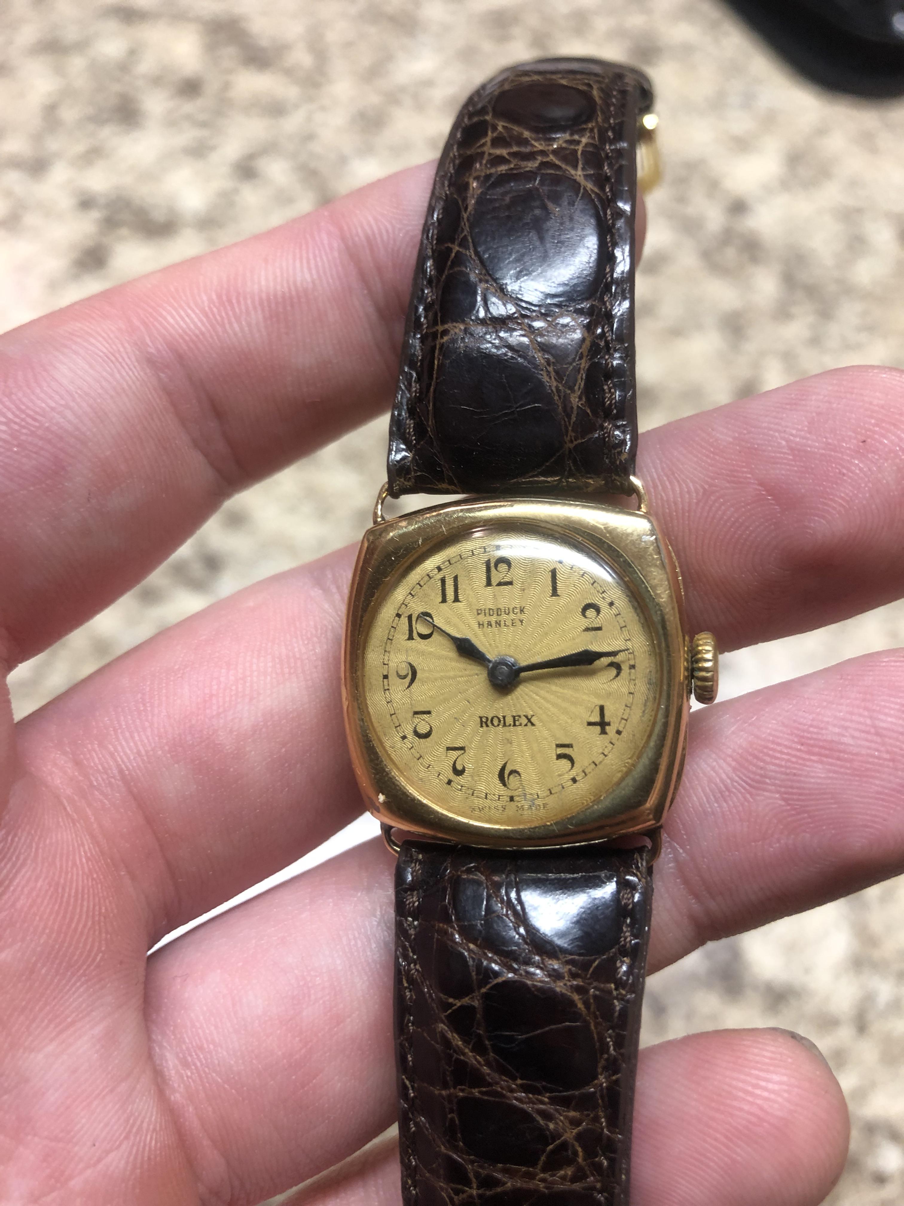 The watch has the original dial which is showing some discolouration... Ladies rolex 9ct yellow gold manually wound wristwatch with one tenth rolled gold expanding bracelet. Rolex 1920s 9k gold, octagonal case, ladies watch: This is a rare watch in this original condition and is in good working order. This 1927 octagonal rolex is in good condition for a watch from this period. How much is a 1920s rolex? The price for a 1920s rolex starts at $1,450 and tops out at $36,000 with these watches, on average, selling for $7,800. 22/09/2017 · the 1920s was a pivotal decade for the young rolex company, and one that laid the groundwork for the relentless series of innovations that have set the company so far apart from every other watchmaker today. Please find our current stock on the rolex watches page, all watches listed here are no longer available.. Rolex 1920s 14k gold large size curved case: